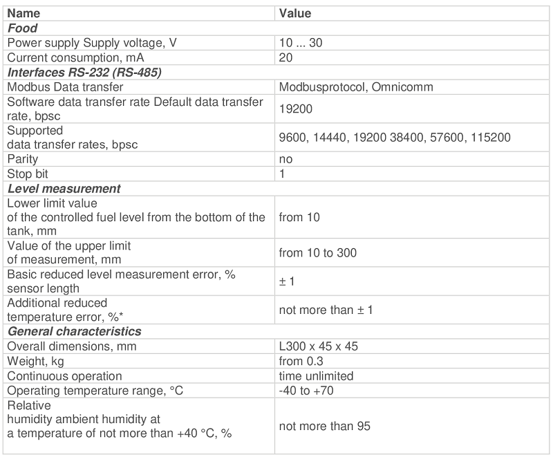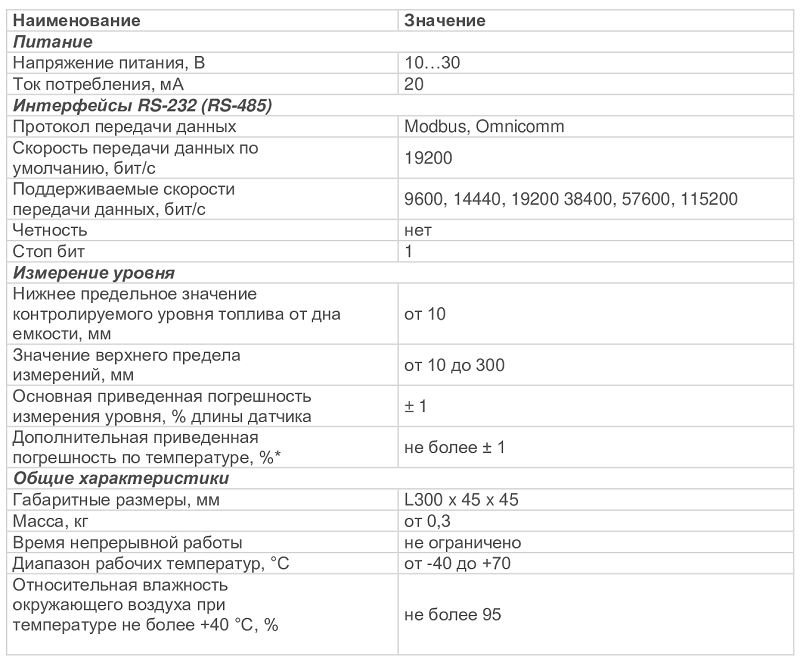 топливного бака. Датчик соместим с трекерами работающими по интерфейсу RS 485 или RS 232.