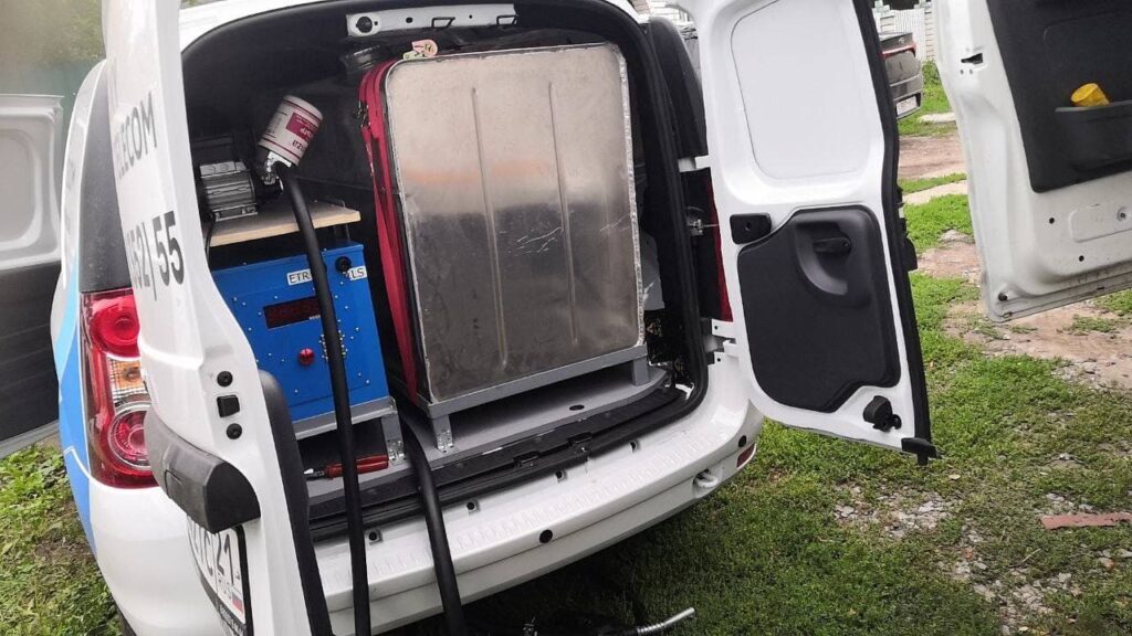 Компактность и удобство расположения органов управления станцией позволяет её вместить внутри автомобиля вместе с ёмкостью,