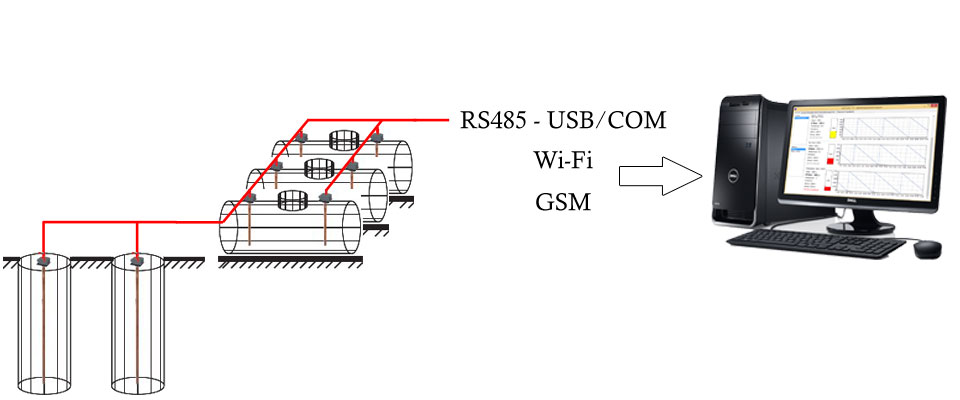 Сборные датчики уровня топлива - используются для измерения уровня топлива в ёмкостях более 1500 мм. Эти датчики специально разработаны для измерения уровня топлива в больших резервуарах. Таких как бензовозы, цистерны, стационарные топливные баки и других подобных ёмкостях.